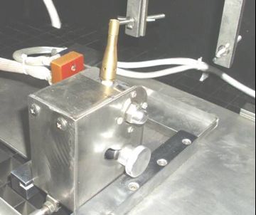 45°-নত বার্নার অনুভূমিকভাবে অগ্রসর হয় যতক্ষণ না শিখা (দৈর্ঘ্য 20 মিমি) পূর্ব-নির্ধারিত সংযোগ বিন্দুতে পৌঁছায়