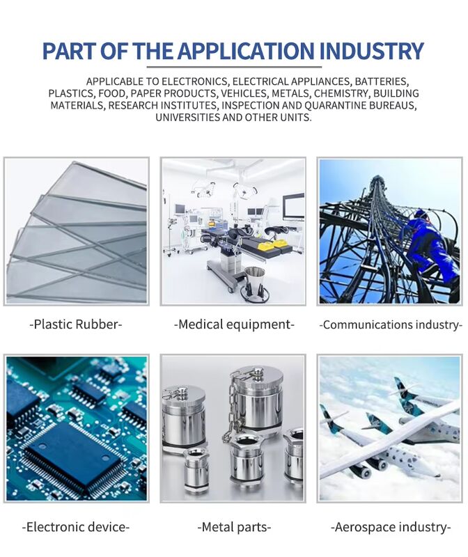 এই পরীক্ষার সরঞ্জামটি তাপ, ঠান্ডা, শুষ্ক অবস্থা এবং আর্দ্রতার প্রতি উপাদানের প্রতিরোধ ক্ষমতা মূল্যায়ন করে। ইলেকট্রনিক্স, বৈদ্যুতিক সরঞ্জাম, যোগাযোগ, যন্ত্রানুষঙ্গ, যানবাহন, প্লাস্টিক পণ্য, ধাতু, খাদ্য, রাসায়নিক, নির্মাণ সামগ্রী, মহাকাশ পণ্য এবং বিভিন্ন শিল্প অ্যাপ্লিকেশনের জন্য উপযুক্ত।